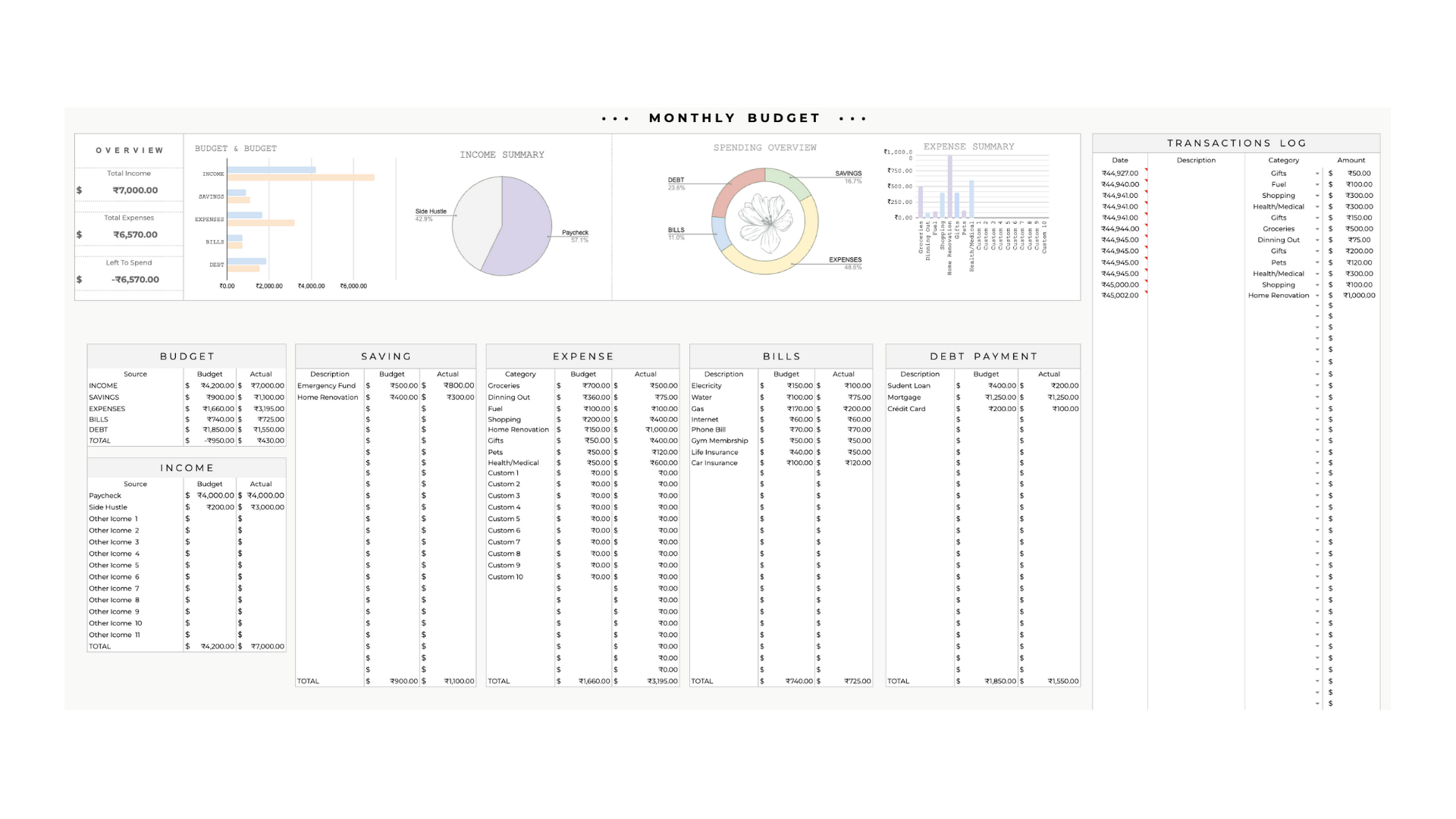 It’s a ready-to-use Google Sheets digital planner to track your income, expenses, bills, savings, and spending categories — all in one place. Just download and start budgeting instantly!